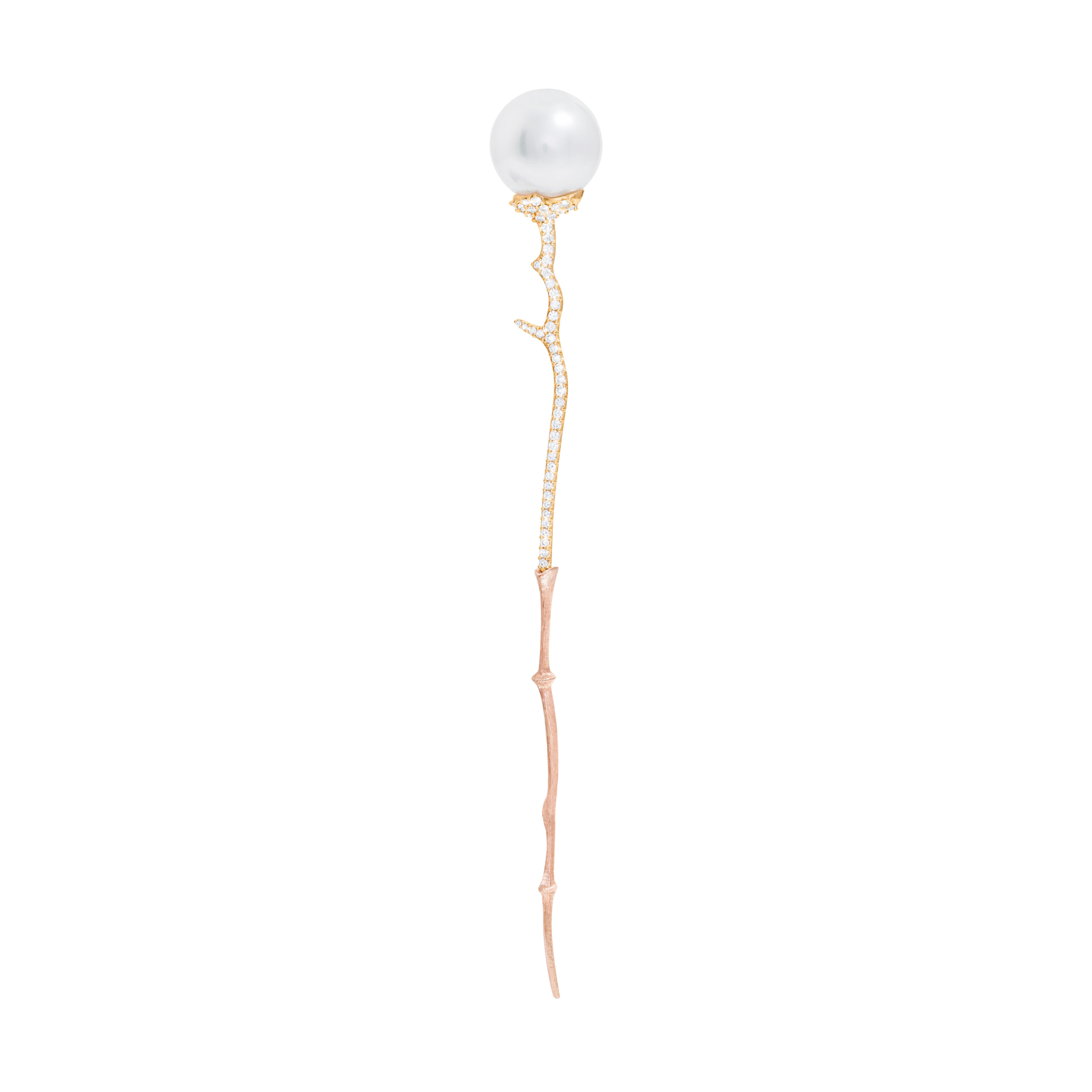 Ref. A9997-423 - Die von Charlotte Lynggaard entworfene Nature Stem Brosche ist aus 750/- Gelb- und Roségold mit 52 handgefassten Diamanten von insgesamt 0,35 carat TW. VS. und einer 14mm Südseeperle gefertigt, die von Charlotte Lynggaard persönlich genehmigt wurde. Handgefertigt von Goldschmiedemeistern.Ihr Ansprechpartner