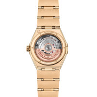 Die Zeiger, das OMEGA Logo, der Constellation-Stern und die Diamantfassungen sind ebenfalls aus 118 K Moonshine™-Gold.