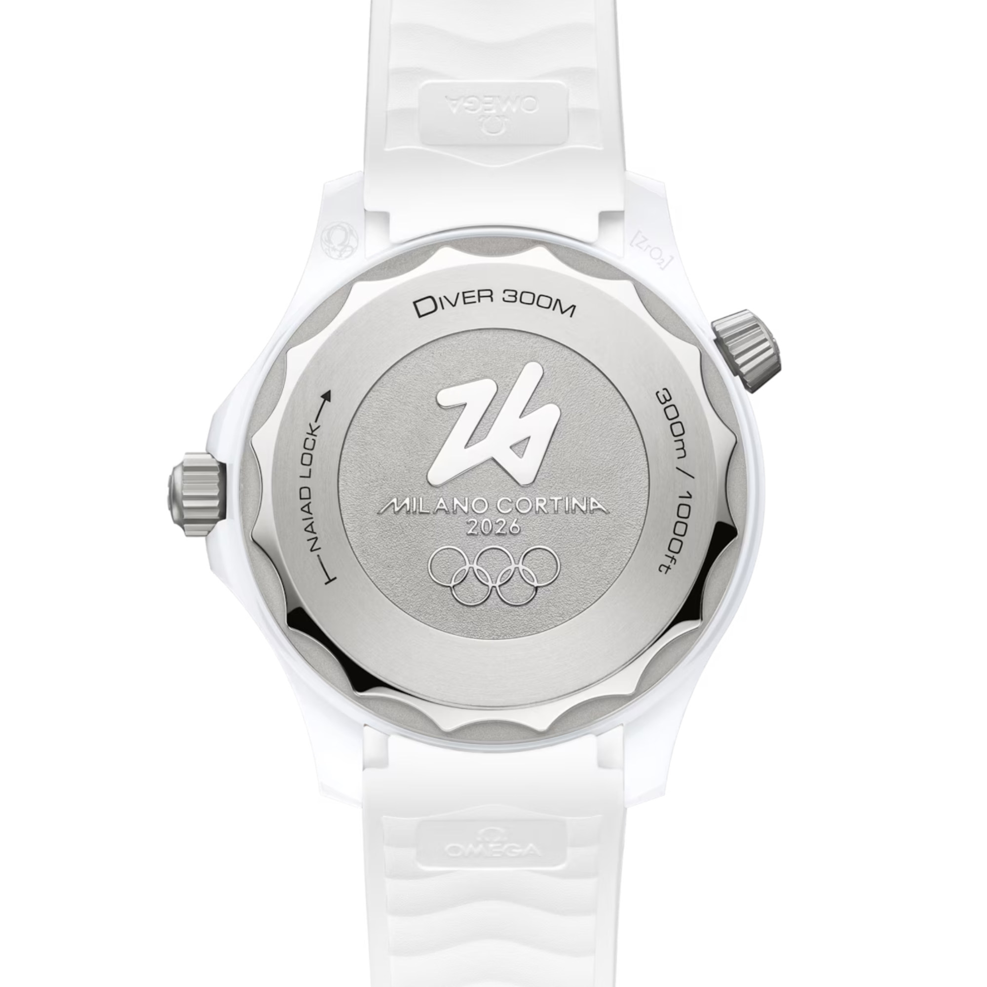 Ref. 522.92.44.20.04.001 - Um OMEGAs Rolle als offizieller Zeitnehmer der Olympischen Winterspiele zu feiern, kombiniert diese exklusive Seamaster Diver 300M ein sportliches Design mit einzigartigen Details als Hommage an Milano Cortina 2026.