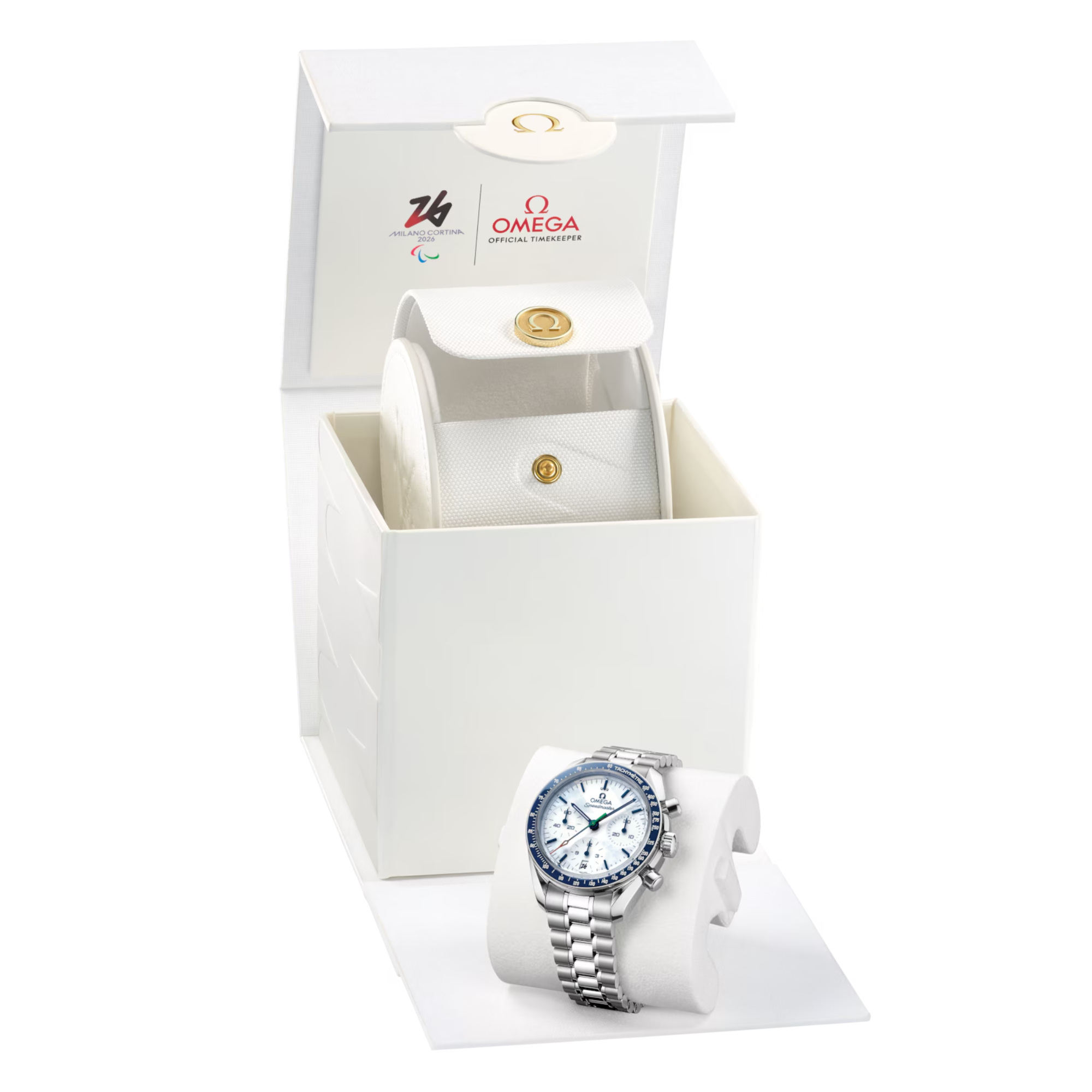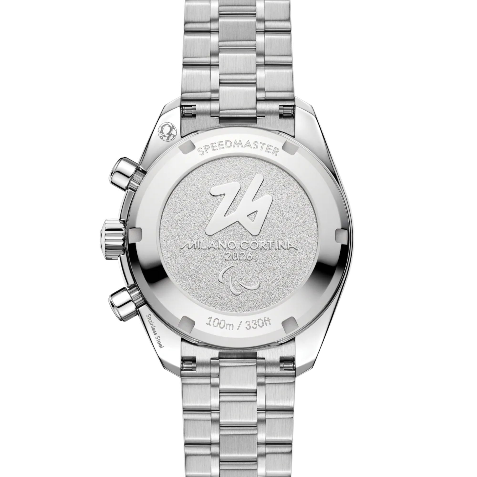 Ref. 522.30.38.50.04.002 - Um OMEGAs Rolle als offizieller Zeitnehmer der Paralympischen Winterspiele zu feiern, kombiniert dieser exklusive Zeitmesser das zeitlose Design der Speedmaster mit einzigartigen Details als Hommage an Milano Cortina 2026.