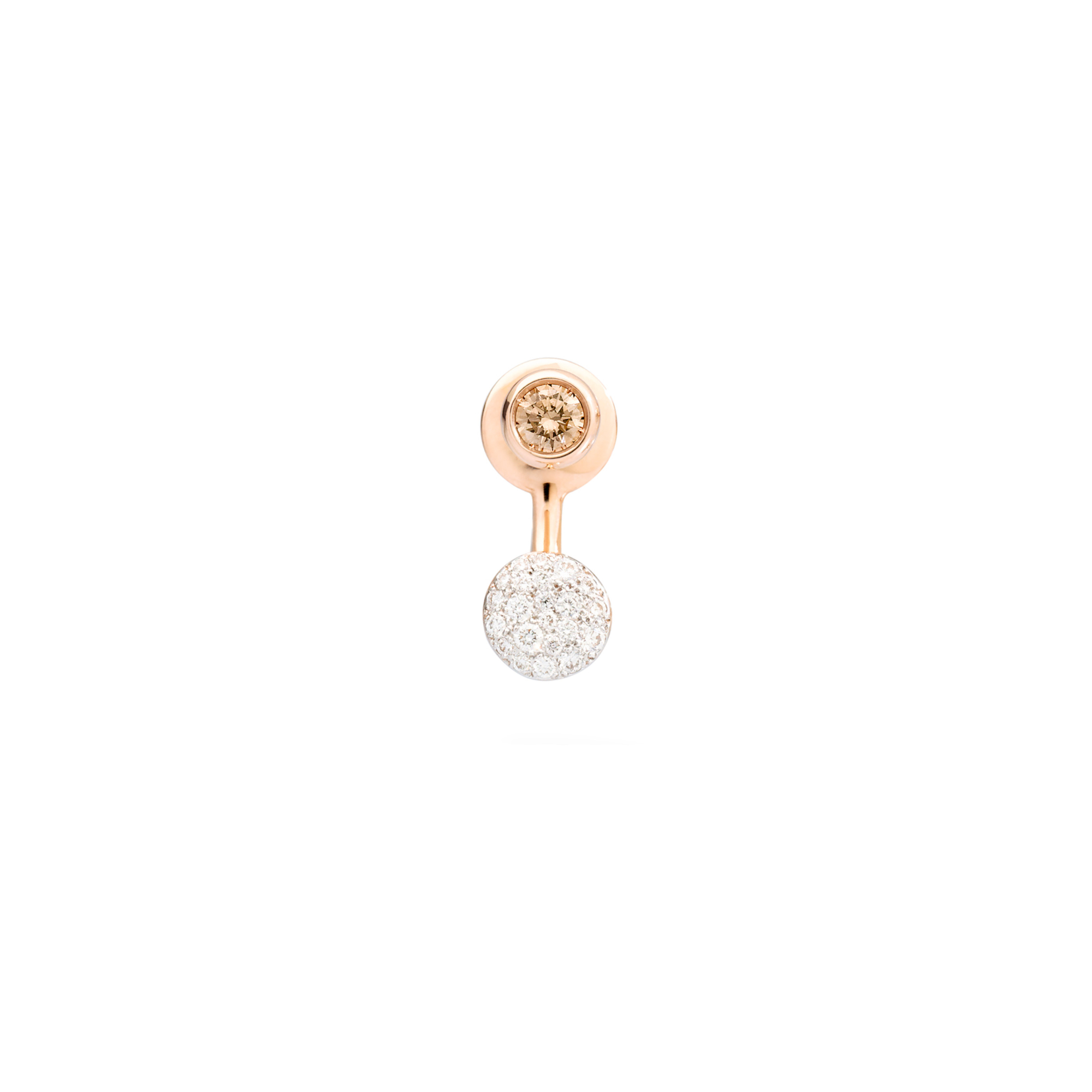 Ref. PHC3052O7WHRDBRB0 - Sabbia ist eines der charakteristischen Designs von Pomellato, das es wagt, Diamanten in einem ganz neuen Licht zu präsentieren. Sabbia zelebriert die unregelmäßige Schönheit der Natur und bietet verschiedene Möglichkeiten, Diamanten auf eine neue Art und Weise zu tragen. Die Vielseitigkeit ist das Herzstück des unkonventionellen Charakters von Sabbia. Der Ohrring mit einem braunen Solitär-Diamanten in Kombination mit einer Pavé-Scheibe aus weißen Diamanten ist eine Einladung zum Experimentieren.