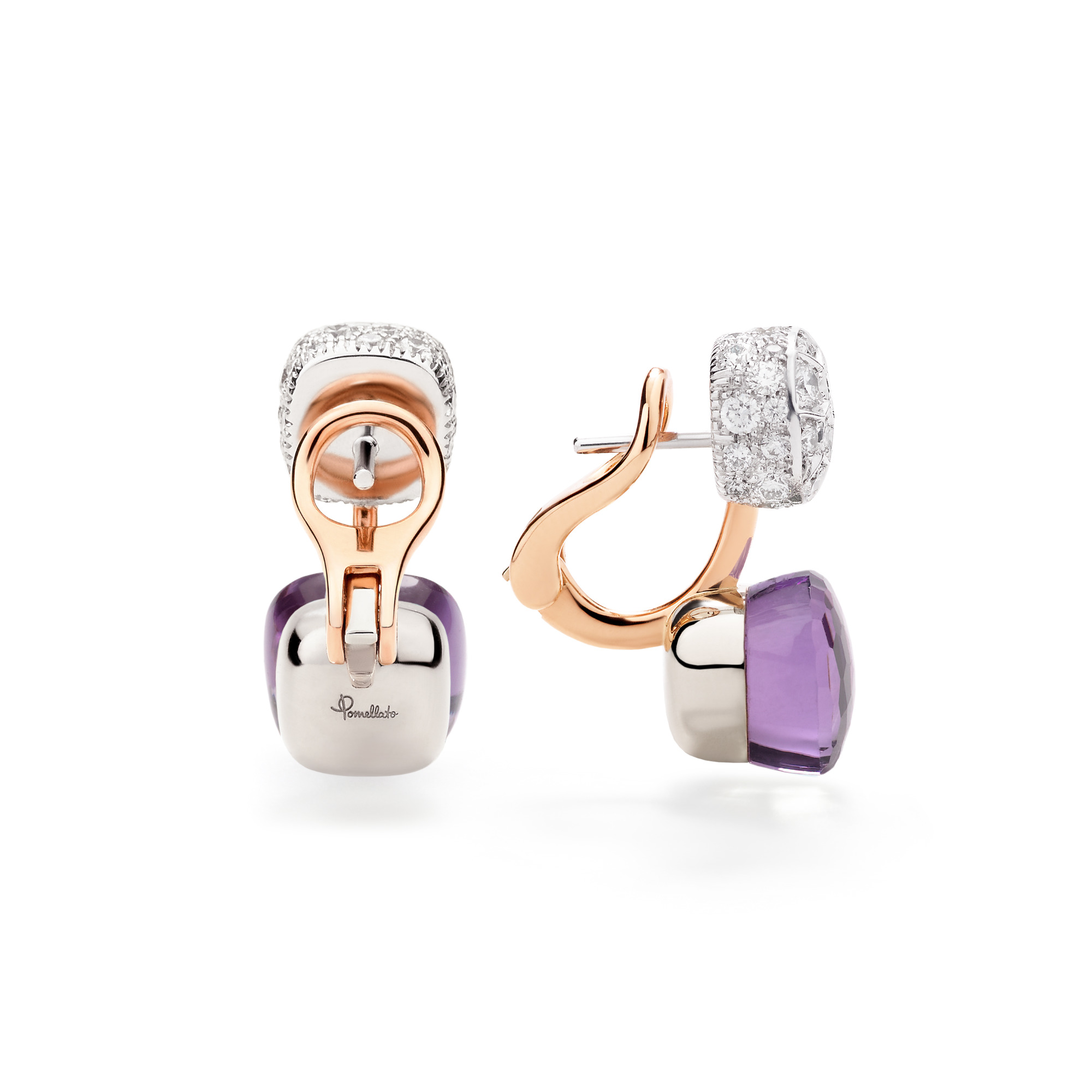 Ref. POC4020O6WHRDB0IY - Wenn ein einziger Stein ein ganzes Spektrum an Gefühlen in sich tragen kann, versteht man die Magie von Nudo. In diesem Jubiläumsmoment feiert Pomellatos ikonischste Kreation Farbe in perfekter Harmonie – Edelsteine, die im idealen Gleichgewicht miteinander schwingen. Die Nudo Toi et Moi Ohrringe aus 18-karätigem Rosé- und Weißgold spielen mit Farbe und Licht: Strahlende Amethyste treffen auf die Brillanz von Pavé aus weißen Diamanten auf rhodiniertem Weißgold. Der Kontrast zwischen facettierter Farbintensität und funkelnden Oberflächen schafft eine elegante Balance – ideal, um sie mit weiteren Kreationen aus der Toi et Moi Farbwelt zu kombinieren.
