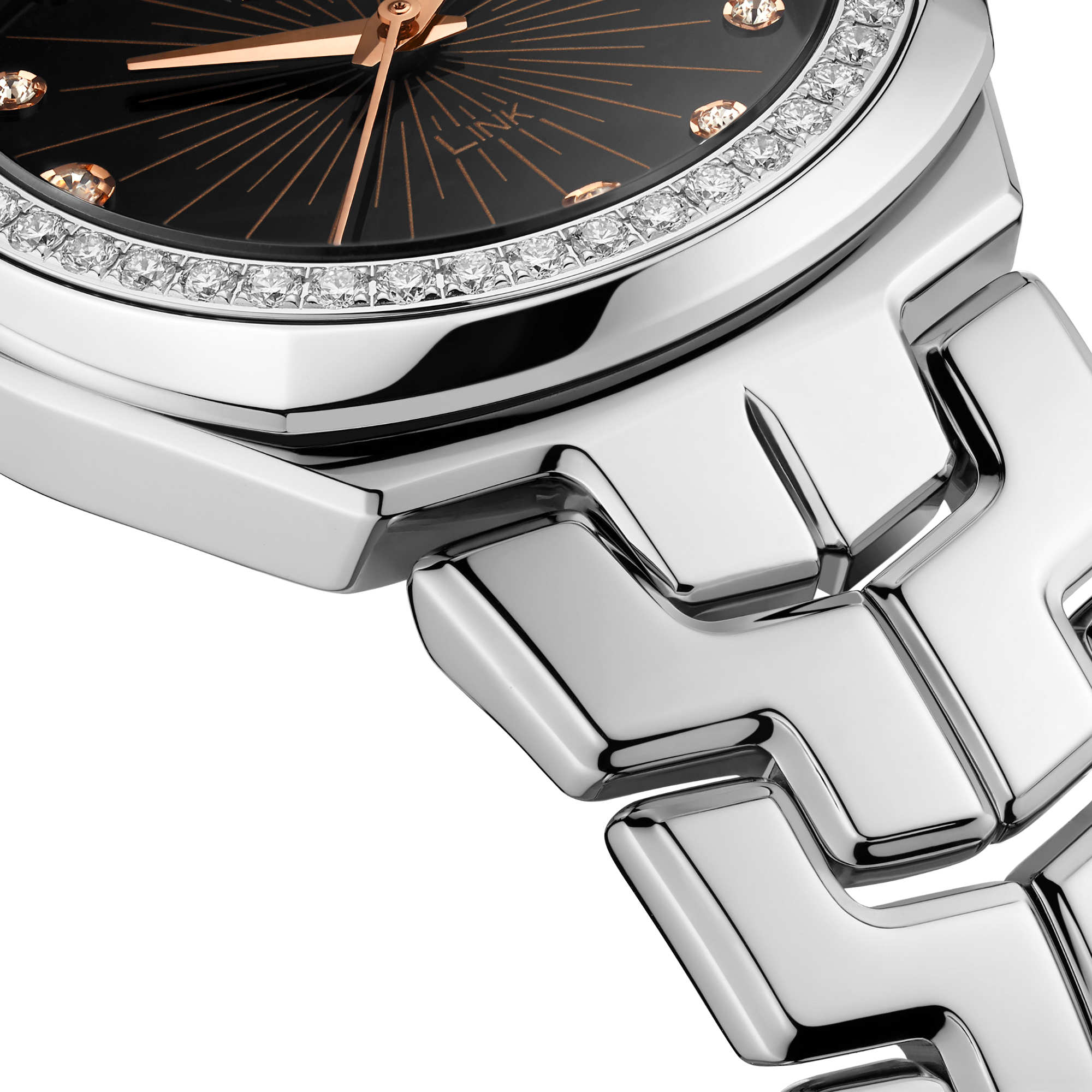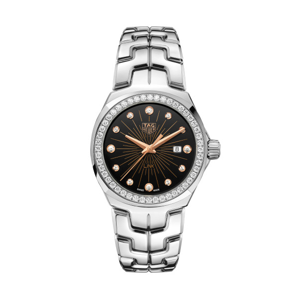 Ref. WBC131G.BA0649 - Luxus und Eleganz vereinen sich in dieser 32 mm TAG Heuer Link. Zusätzlich zu den S-förmigen Gliedern des Armbands zeichnet sich diese Uhr durch ein schwarz schimmerndes Zifferblatt und mit 12 Diamanten besetzte Indizes (0,158 ct) aus. Die Lünette ist ebenfalls mit 48 Diamanten (0,68 ct) besetzt.Ihr Ansprechpartner