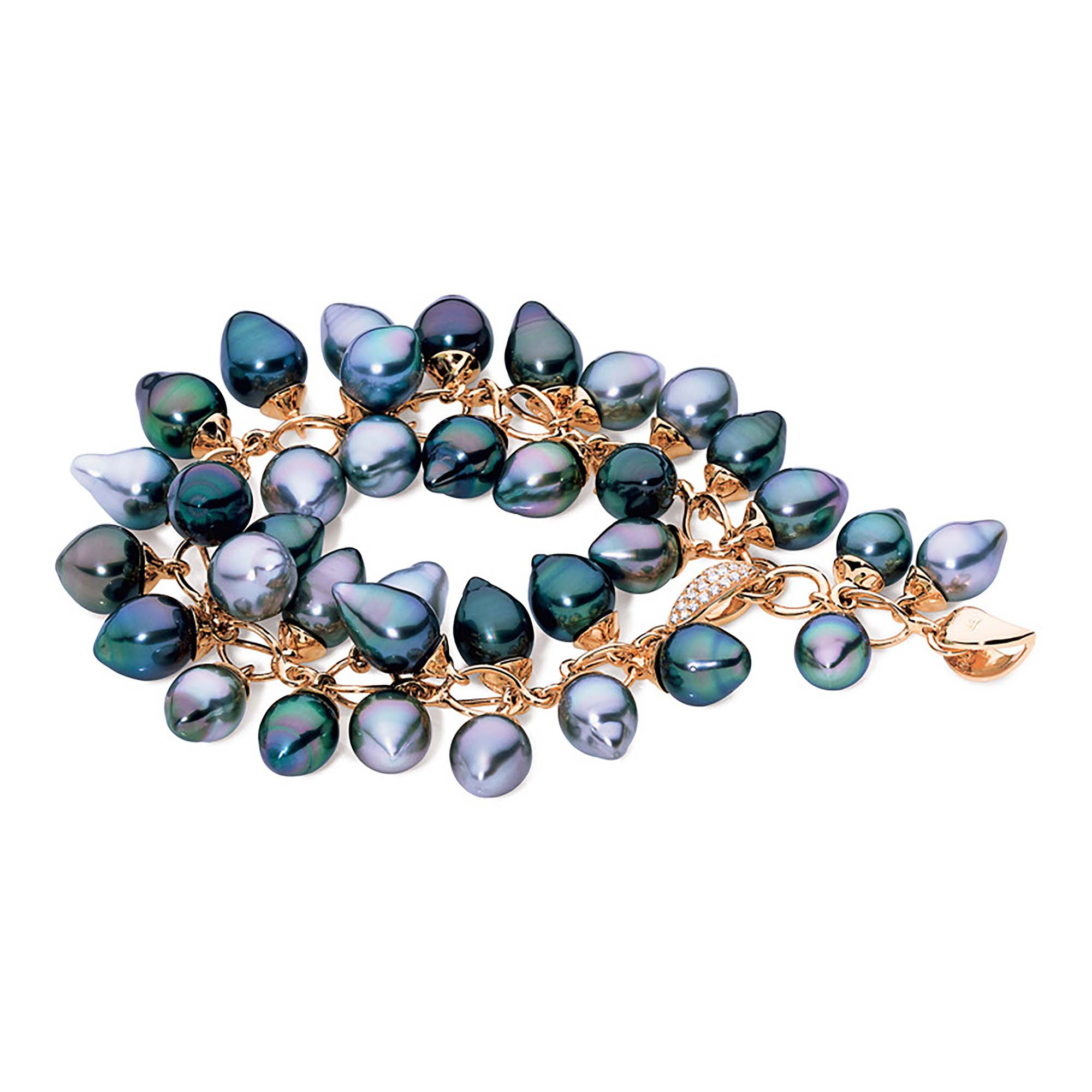 Ref. B-GRP-Tah-rg - Das GRAPES Armband aus 18 Karat Gold präsentiert natürliche Tahiti-Perlen in faszinierenden Nuancen, die von sanften Silbertönen bis zu tiefen Pfauenfarben reichen. Jede Perle zeigt ihre ganz eigene Form und ihren individuellen Lüster. Dank der verstellbaren Größe passt sich das Armband jedem Handgelenk an und wird von einer diamantbesetzten Schließe vollendet. Ein lebendiges Schmuckstück mit elegant-modernem Twist.Ihr Ansprechpartner