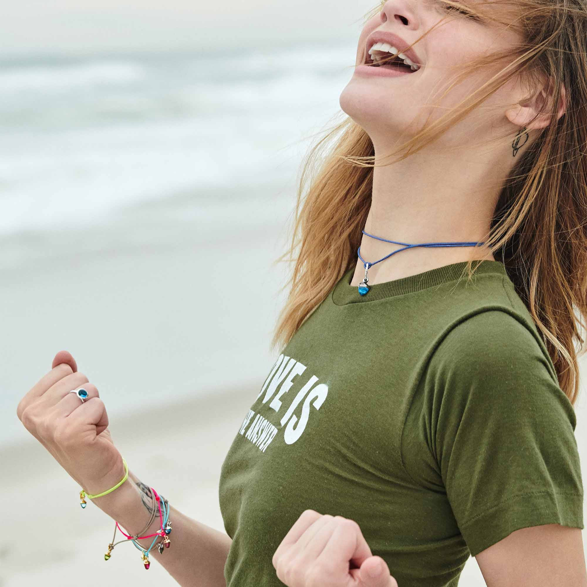 Ref. B-MM-Per-yg - Never without my MIKADO! Unser grüner Peridot Minikegel wird in diesem süßen Nylonarmband zu Ihrem ständigen Begleiter. Selbstverständlich in Begleitung eines kleinen Goldtropfens.