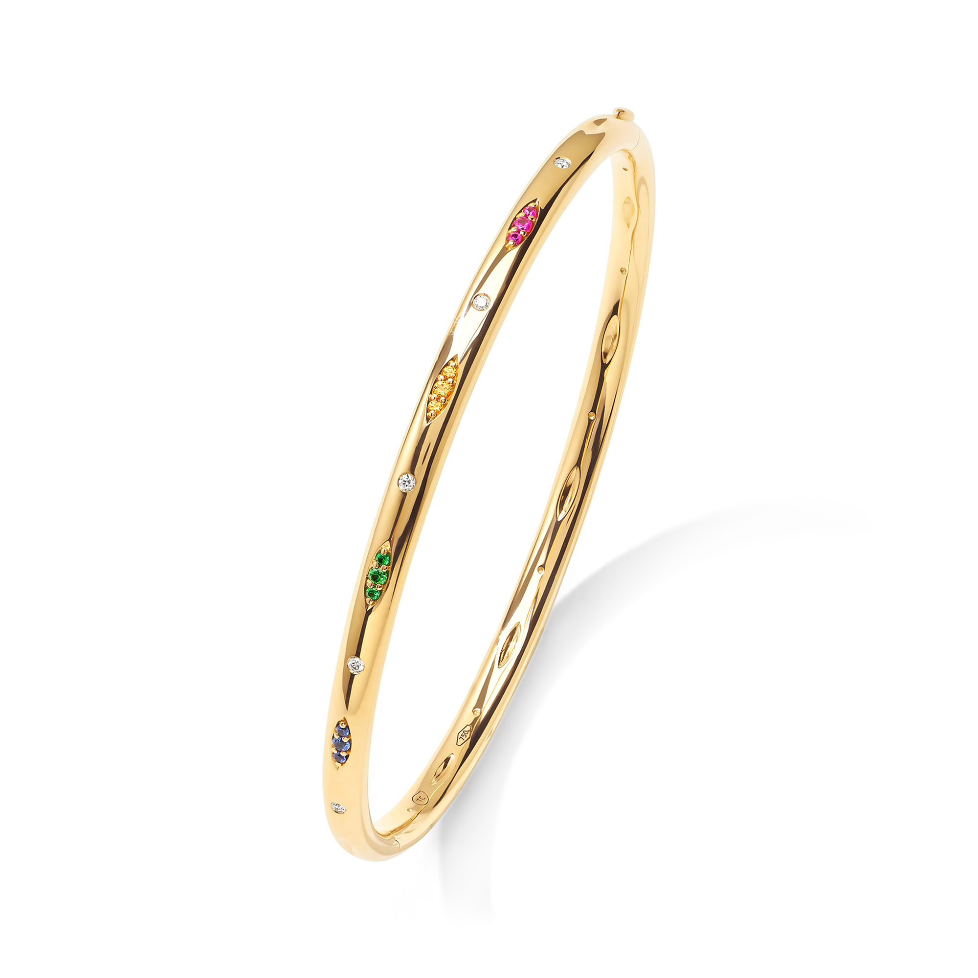 Ref. BA-Gyp-CanP-17-yg - Der GYPSY Armreif aus 18 Karat Gold ist mit farbenfrohem 'Candy Pavé' verziert – einer verspielten Mischung aus Edelsteinen, die dem klaren Design leuchtende Brillanz verleiht. Erhältlich in vier Größen, kann der Armreif enger anliegend für einen eleganten Look oder eine Nummer größer für einen lässigen Boho-Stil getragen werden. Ein vielseitiges Schmuckstück, das sich mühelos mit weiteren GYPSY Armreifen stapeln lässt – für einen Look, der ganz persönlich ist.Ihr Ansprechpartner