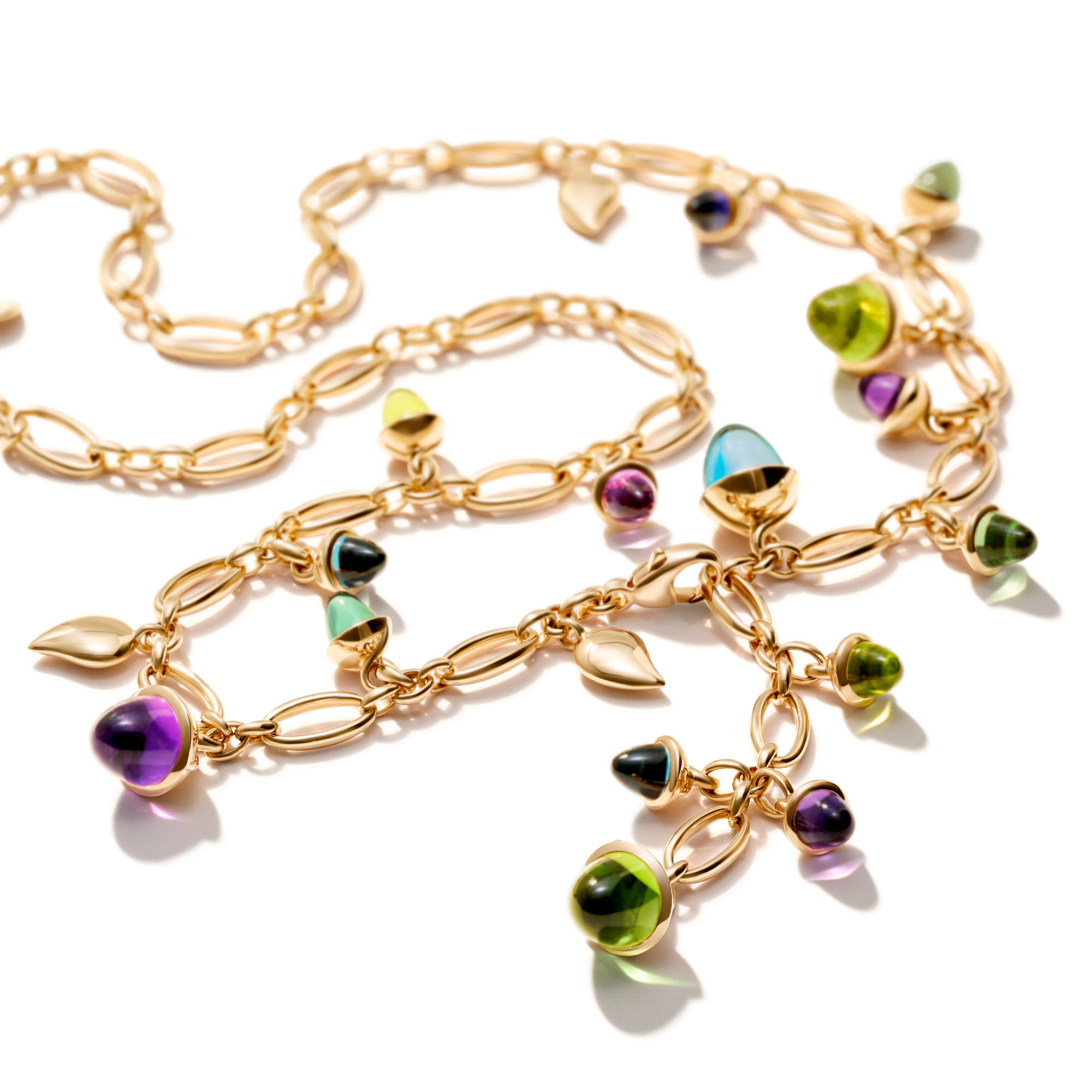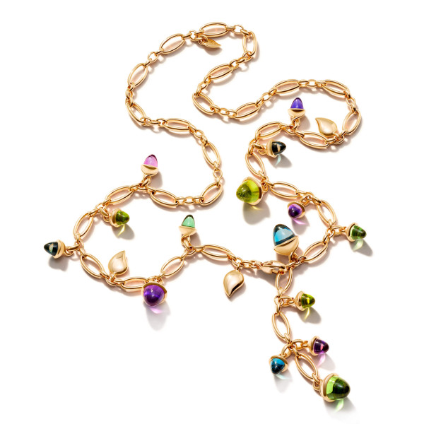 Ref. N-M-56-Aur-rg - Setzen Sie ein Statement mit der MIKADO Halskette 'Aurora', die vielseitige Styling-Möglichkeiten für jeden Anlass bietet. Ein funkelnder Wasserfall aus buntfarbigen Edelsteinen erstrahlt an einer handgefertigten Kette aus 18 Karat Gold. Lässig am Tag, elegant am Abend.Ihr Ansprechpartner