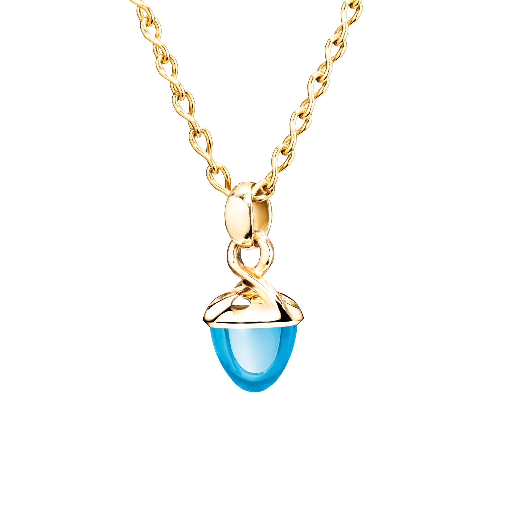 Ref. P-MB-f-ToSw-yg - Der ikonische MIKADO Bouquet Fairy Anhänger präsentiert einen leuchtenden hellblauen Swiss-Topas in der charakteristischen kegelförmigen Form, gefasst in 18 Karat Gold. Das filigrane Kappendesign lässt das Licht durch den Edelstein fließen, verstärkt seine Brillanz und offenbart seine volle Schönheit. Ideal zum Mix & Match, Sammeln und Verschenken.Ihr Ansprechpartner
