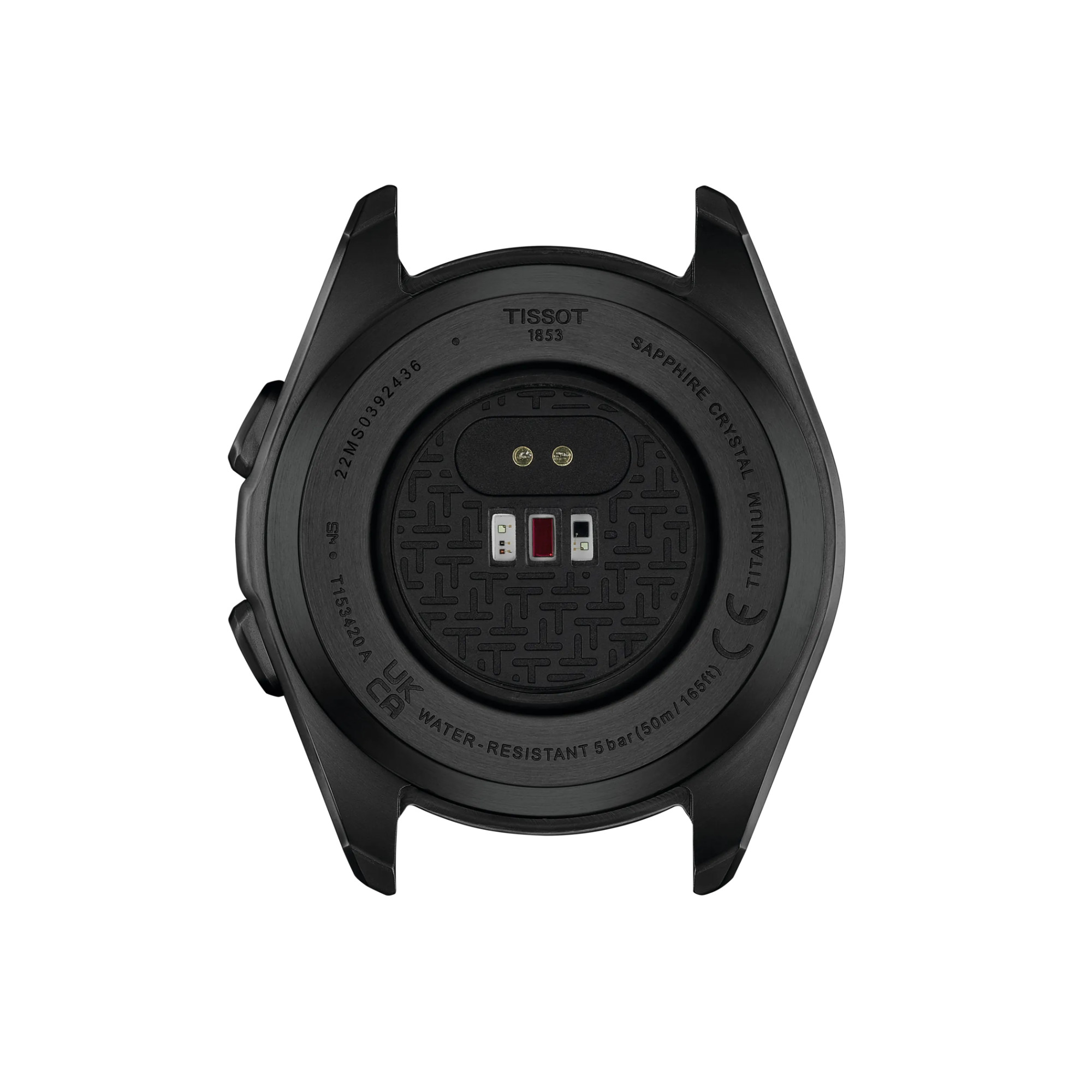 Dieses Tissot T-Touch Connect Sport Modell besitzt ein amagnetisches Titangehäuse mit schwarzer PVD-Beschichtung und eine schwarze Keramiklünette. Das ebenfalls schwarze Zifferblatt liegt gut geschützt unter kratzfestem Saphirglas. Ein Titanarmband mit schwarzer PVD-Beschichtung komplettiert den markanten Look. Es verfügt über eine Faltschließe und lässt sich dank des Schnellwechselsystems werkzeuglos ganz einfach austauschen.