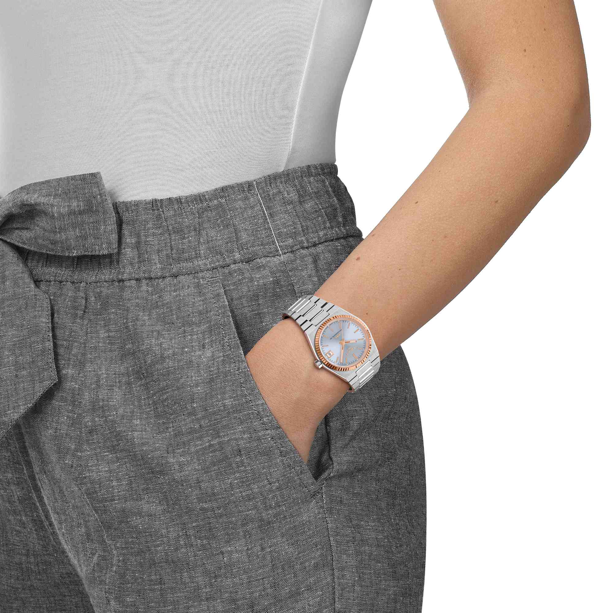 Ref. T931.207.41.351.00 - Im Jahr 1978 kreierte Tissot ein Quarzmodell, das sich durch ein schlankes Gehäuse, schmale Indizes und ein Stahlarmband auszeichnete. Sein für die Zeit typischer breiter, horizontaler Bandanstoß war perfekt in das flache Gehäuse in Tonneau-Form integriert.Ihr Ansprechpartner