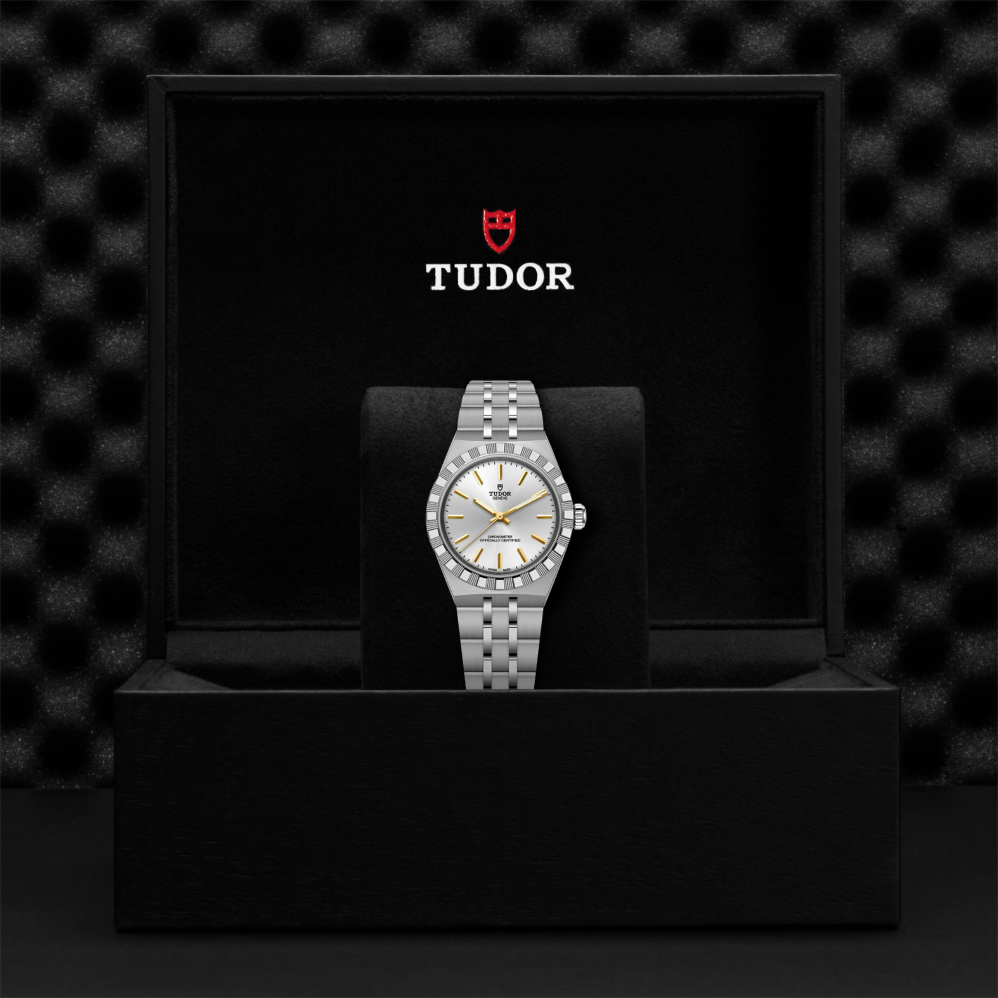 Ref. M2830A1A0-0002 - Mit ihrem integrierten Metallarmband, das nahtlos in das Gehäuse übergeht, zeichnet sich die TUDOR Royal durch ein fließendes und stilsicheres Design aus. Charakterisiert durch ihre drei breiten satinierten Bandelemente, zwischen denen zwei schmalere polierte Elemente positioniert sind, und ihre „T-fit“-Schließe, betont die glatte Beschaffenheit ihrer Oberflächen die große Aufmerksamkeit, die TUDOR dem Tragekomfort schenkt. Erhältlich in Edelstahl oder mit abwechselnden Elementen in Edelstahl und Gelbgold, sprechen die Modelle dieser Linie mit ihrer fein bearbeiteten Oberfläche jeden Geschmack an.