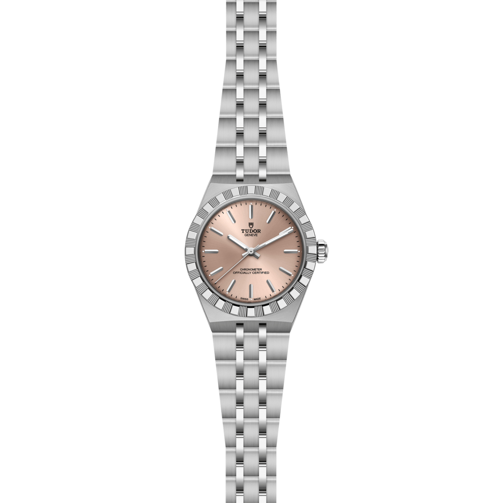 Ref. M2830A1A0-0003 - Mit ihrem integrierten Metallarmband, das nahtlos in das Gehäuse übergeht, zeichnet sich die TUDOR Royal durch ein fließendes und stilsicheres Design aus. Charakterisiert durch ihre drei breiten satinierten Bandelemente, zwischen denen zwei schmalere polierte Elemente positioniert sind, und ihre „T-fit“-Schließe, betont die glatte Beschaffenheit ihrer Oberflächen die große Aufmerksamkeit, die TUDOR dem Tragekomfort schenkt. Erhältlich in Edelstahl oder mit abwechselnden Elementen in Edelstahl und Gelbgold, sprechen die Modelle dieser Linie mit ihrer fein bearbeiteten Oberfläche jeden Geschmack an.