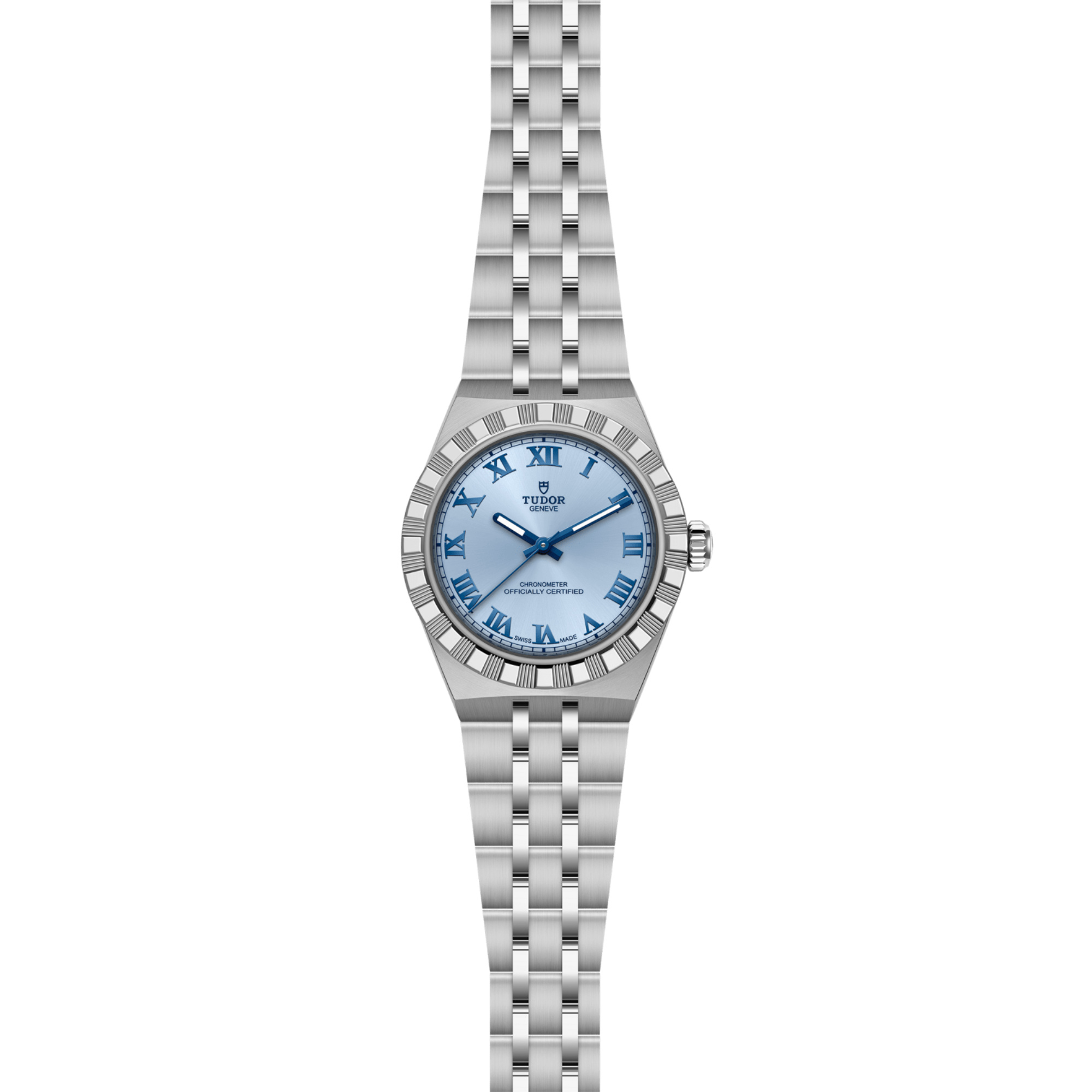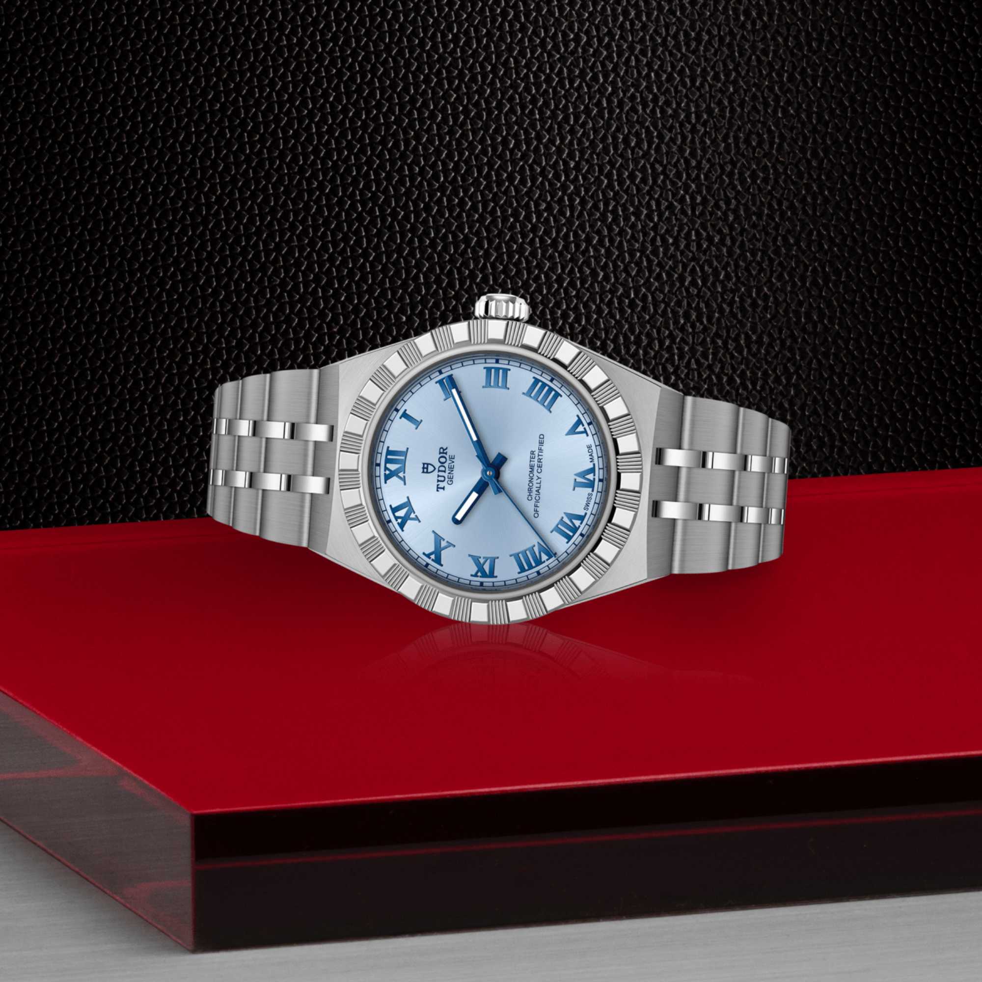Ref. M2830A1A0-0004 - Mit ihrem integrierten Metallarmband, das nahtlos in das Gehäuse übergeht, zeichnet sich die TUDOR Royal durch ein fließendes und stilsicheres Design aus. Charakterisiert durch ihre drei breiten satinierten Bandelemente, zwischen denen zwei schmalere polierte Elemente positioniert sind, und ihre „T-fit“-Schließe, betont die glatte Beschaffenheit ihrer Oberflächen die große Aufmerksamkeit, die TUDOR dem Tragekomfort schenkt. Erhältlich in Edelstahl oder mit abwechselnden Elementen in Edelstahl und Gelbgold, sprechen die Modelle dieser Linie mit ihrer fein bearbeiteten Oberfläche jeden Geschmack an.