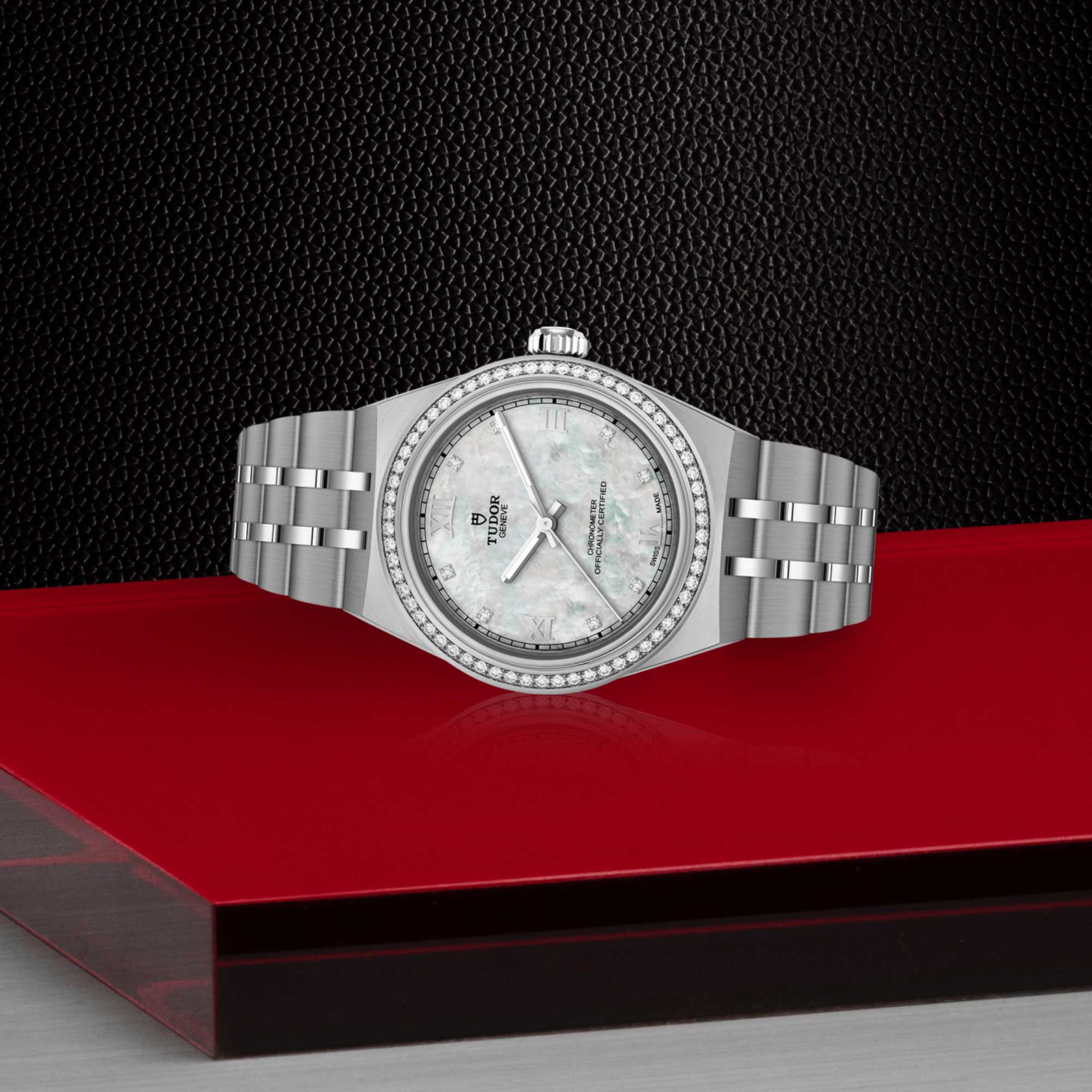 Ref. M2830A1S0-0001 - Mit ihrem integrierten Metallarmband, das nahtlos in das Gehäuse übergeht, zeichnet sich die TUDOR Royal durch ein fließendes und stilsicheres Design aus. Charakterisiert durch ihre drei breiten satinierten Bandelemente, zwischen denen zwei schmalere polierte Elemente positioniert sind, und ihre „T-fit“-Schließe, betont die glatte Beschaffenheit ihrer Oberflächen die große Aufmerksamkeit, die TUDOR dem Tragekomfort schenkt. Erhältlich in Edelstahl oder mit abwechselnden Elementen in Edelstahl und Gelbgold, sprechen die Modelle dieser Linie mit ihrer fein bearbeiteten Oberfläche jeden Geschmack an.