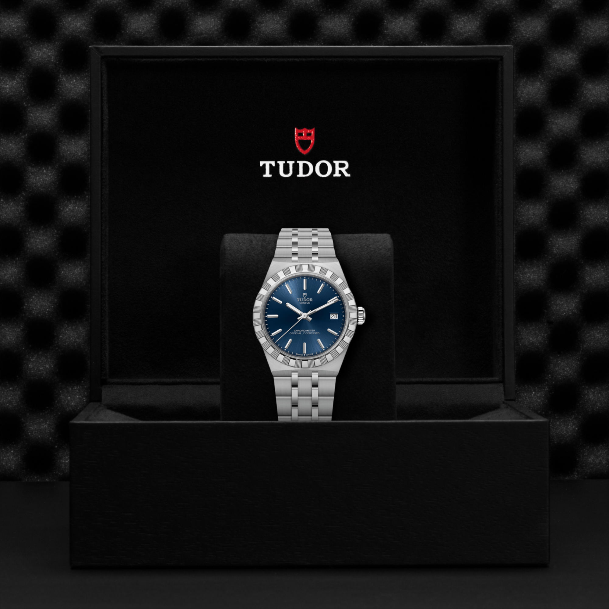 Ref. M2836C1A0-0102 - Mit ihrem integrierten Metallarmband, das nahtlos in das Gehäuse übergeht, zeichnet sich die TUDOR Royal durch ein fließendes und stilsicheres Design aus. Charakterisiert durch ihre drei breiten satinierten Bandelemente, zwischen denen zwei schmalere polierte Elemente positioniert sind, und ihre „T-fit“-Schließe, betont die glatte Beschaffenheit ihrer Oberflächen die große Aufmerksamkeit, die TUDOR dem Tragekomfort schenkt. Erhältlich in Edelstahl oder mit abwechselnden Elementen in Edelstahl und Gelbgold, sprechen die Modelle dieser Linie mit ihrer fein bearbeiteten Oberfläche jeden Geschmack an.
