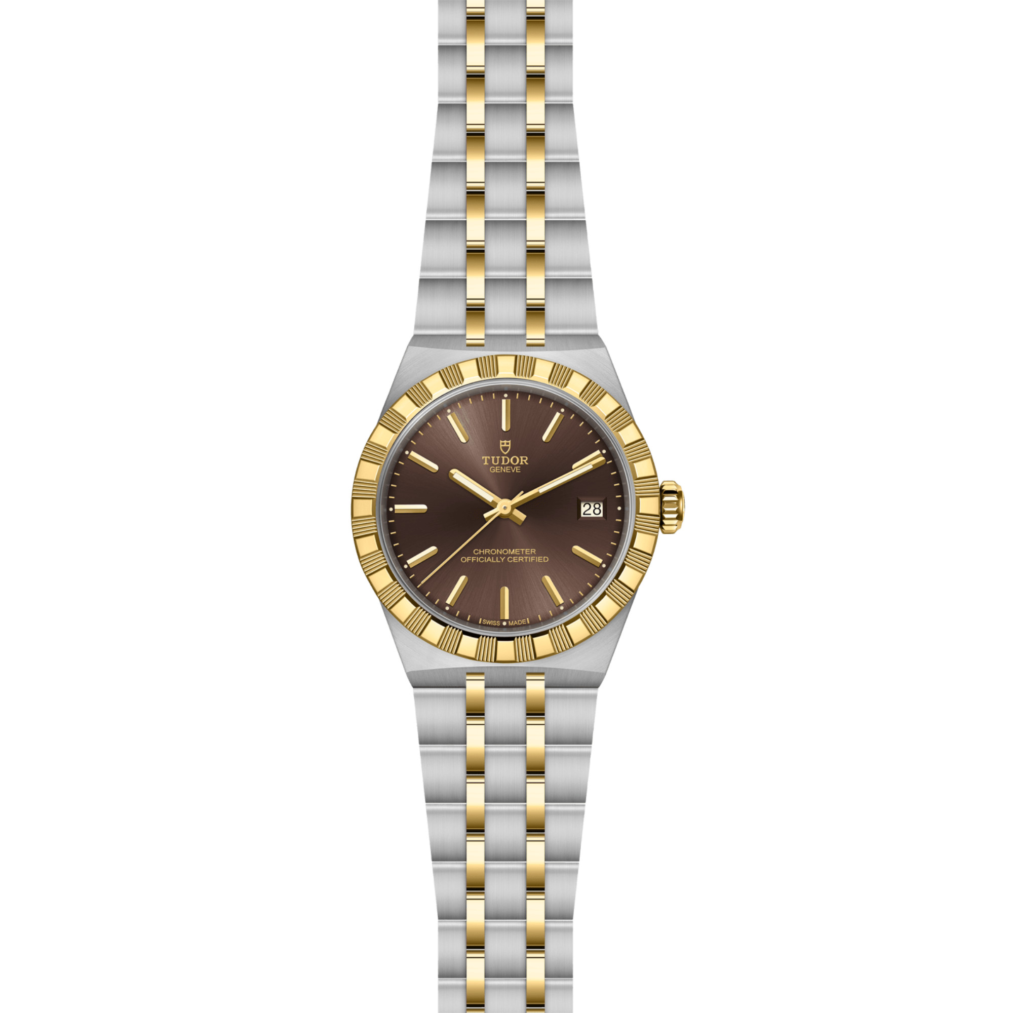 Ref. M2836C1A3-0001 - Mit ihrem integrierten Metallarmband, das nahtlos in das Gehäuse übergeht, zeichnet sich die TUDOR Royal durch ein fließendes und stilsicheres Design aus. Charakterisiert durch ihre drei breiten satinierten Bandelemente, zwischen denen zwei schmalere polierte Elemente positioniert sind, und ihre „T-fit“-Schließe, betont die glatte Beschaffenheit ihrer Oberflächen die große Aufmerksamkeit, die TUDOR dem Tragekomfort schenkt. Erhältlich in Edelstahl oder mit abwechselnden Elementen in Edelstahl und Gelbgold, sprechen die Modelle dieser Linie mit ihrer fein bearbeiteten Oberfläche jeden Geschmack an.