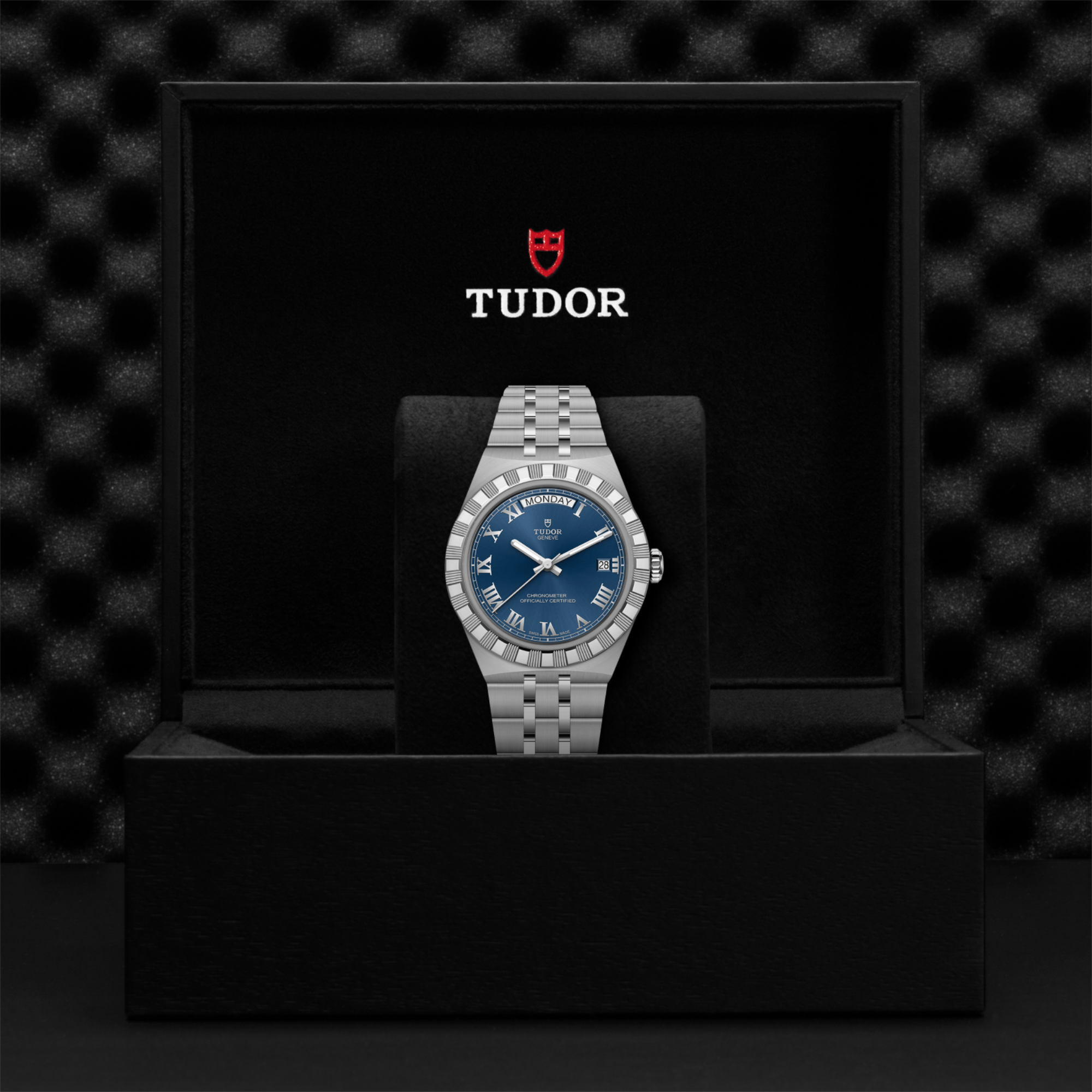Ref. M2840D1A0-0002 - Mit ihrem integrierten Metallarmband, das nahtlos in das Gehäuse übergeht, zeichnet sich die TUDOR Royal durch ein fließendes und stilsicheres Design aus. Charakterisiert durch ihre drei breiten satinierten Bandelemente, zwischen denen zwei schmalere polierte Elemente positioniert sind, und ihre „T-fit“-Schließe, betont die glatte Beschaffenheit ihrer Oberflächen die große Aufmerksamkeit, die TUDOR dem Tragekomfort schenkt. Erhältlich in Edelstahl oder mit abwechselnden Elementen in Edelstahl und Gelbgold, sprechen die Modelle dieser Linie mit ihrer fein bearbeiteten Oberfläche jeden Geschmack an.