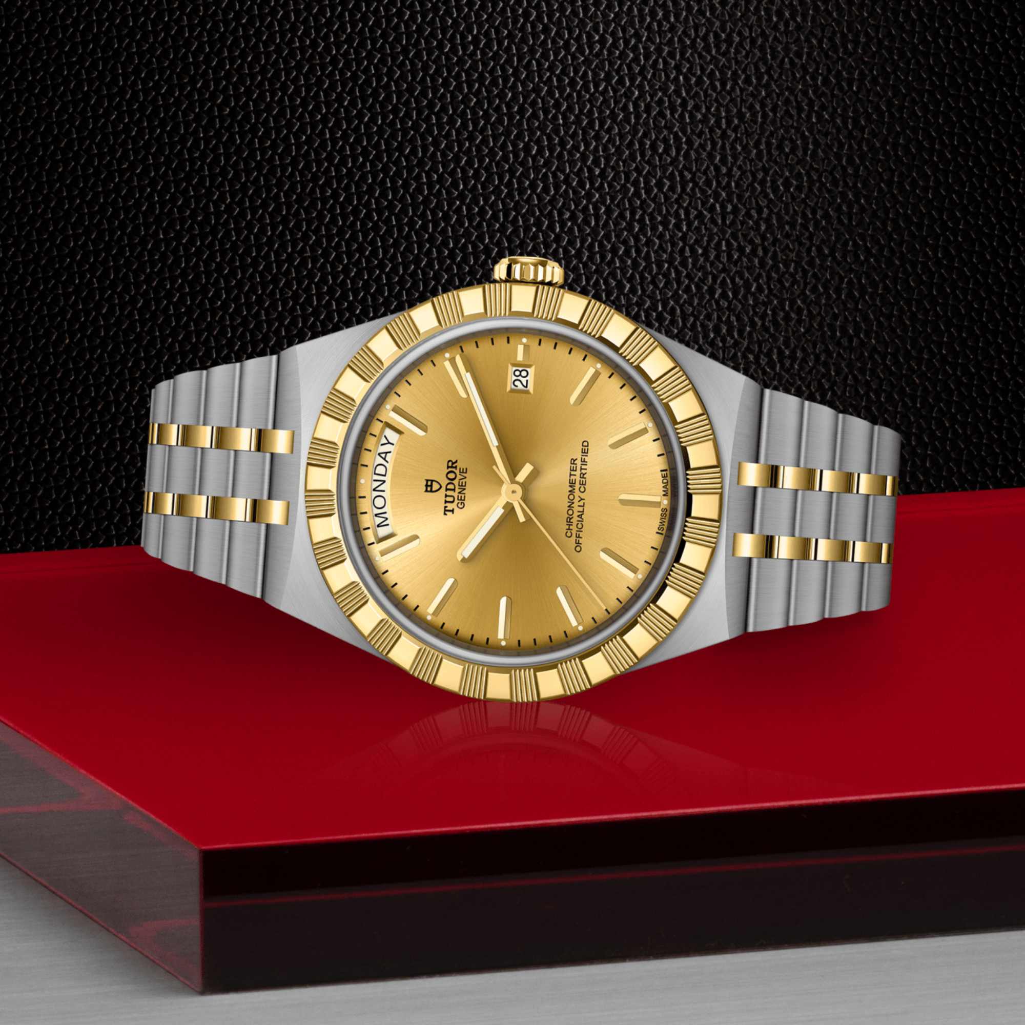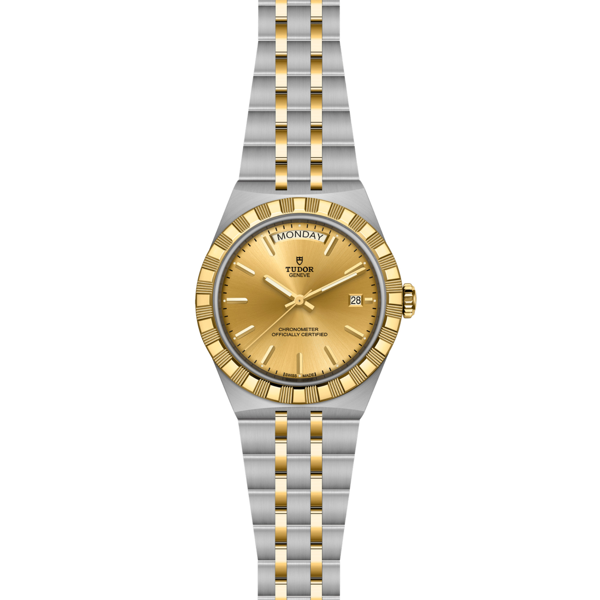 Ref. M2840D1A3-0002 - Mit ihrem integrierten Metallarmband, das nahtlos in das Gehäuse übergeht, zeichnet sich die TUDOR Royal durch ein fließendes und stilsicheres Design aus. Charakterisiert durch ihre drei breiten satinierten Bandelemente, zwischen denen zwei schmalere polierte Elemente positioniert sind, und ihre „T-fit“-Schließe, betont die glatte Beschaffenheit ihrer Oberflächen die große Aufmerksamkeit, die TUDOR dem Tragekomfort schenkt. Erhältlich in Edelstahl oder mit abwechselnden Elementen in Edelstahl und Gelbgold, sprechen die Modelle dieser Linie mit ihrer fein bearbeiteten Oberfläche jeden Geschmack an.