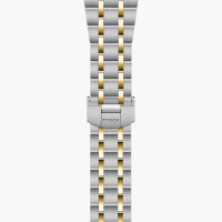 Integiertes Armband aus Edelstahl 316L und 18K Gelbgold mit Sicherheitsfaltschließe, fünfreihig, satinierte Elemente außen und innen, polierte Elemente dazwischen