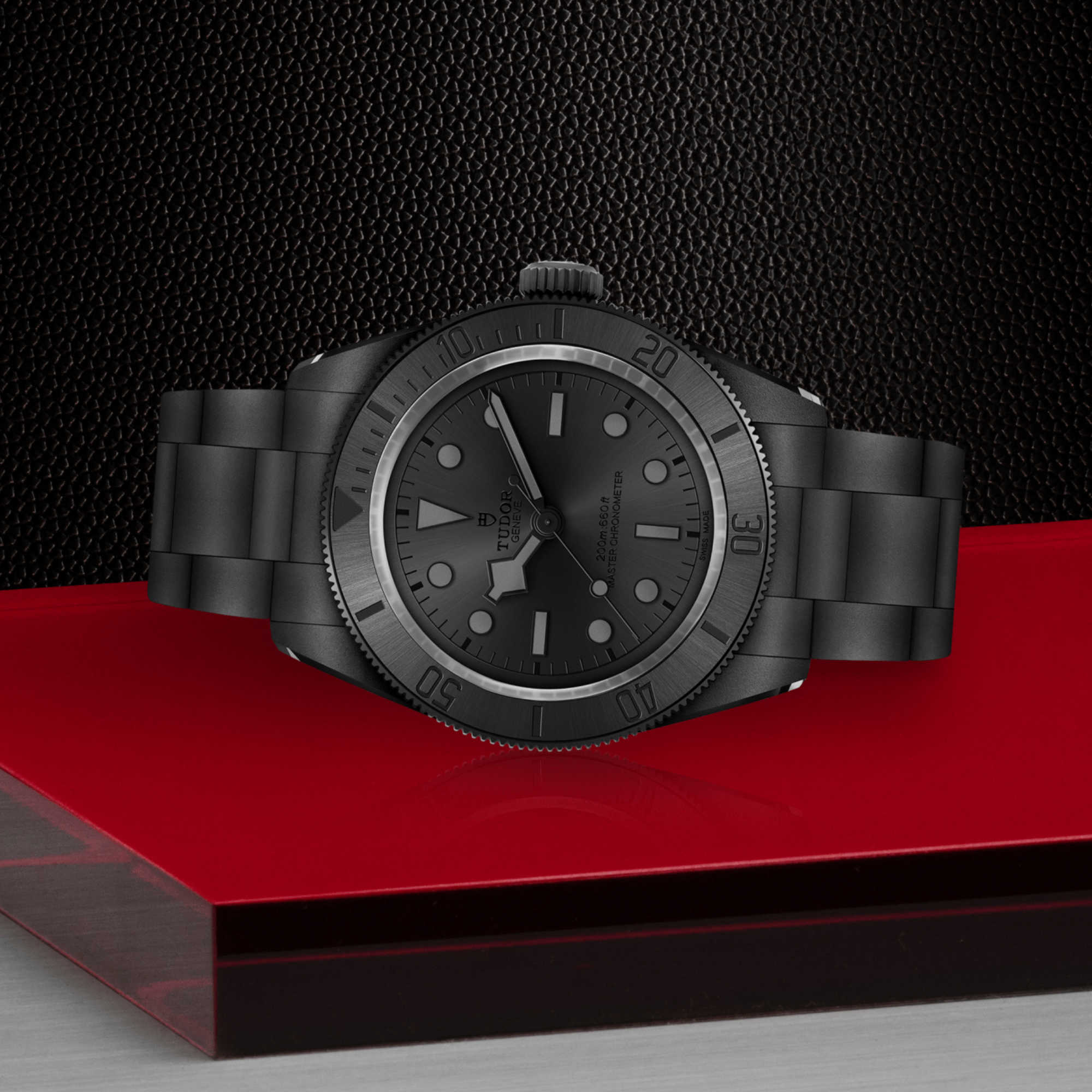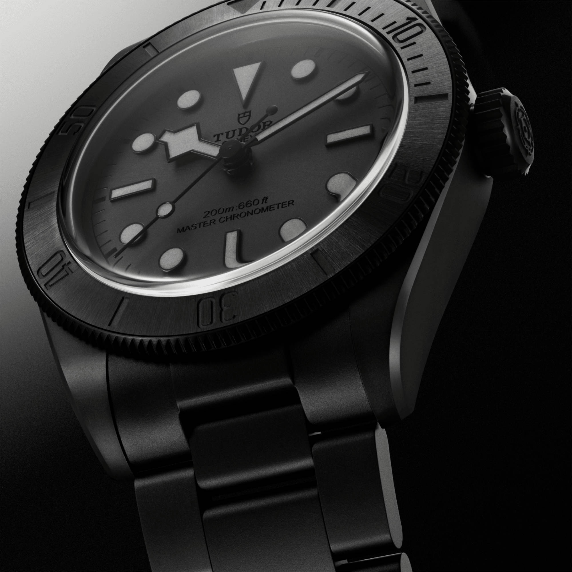 Ref. M7941A1ACNU-0001 - Dieses vom Eidgenössischen Institut für Metrologie, kurz METAS, geprüfte Modell ist der Inbegriff von Hightech-Ästhetik. Die mattschwarzen Keramikelemente, das anthrazitgraue Zifferblatt und die schwarzen Zeiger mit Leuchtmasse unterstreichen die außergewöhnliche Leistungsfähigkeit der Black Bay Ceramic. Keramik ist schwer zu bearbeiten. TUDOR hat jedoch ein passendes Keramikband mit ergonomischen Qualitäten entwickelt – Zeugnis für die Meisterschaft der Marke auf dem Gebiet technischer Innovationen. Zudem besitzt das Modell eine neue Ästhetik, die ganz in der Tradition der „dunklen“ Modelle von TUDOR steht.